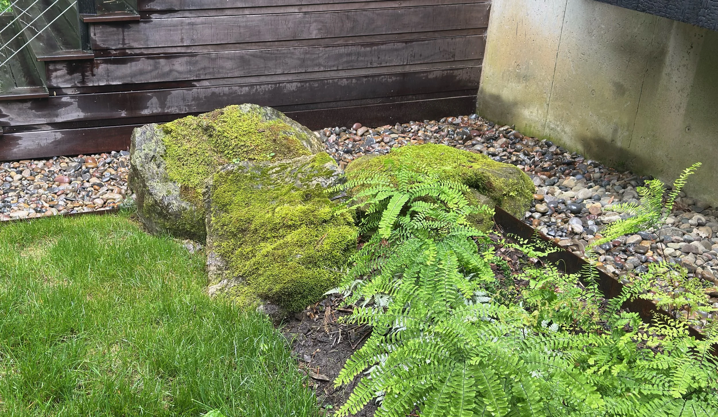 To watch your property grow more green, lush, well manicured and, quite frankly, magical, is such a treat when Gareth is at work! His stonework is supreme and is the #1 feature for which our newly constructed home receives compliments. Our stone porch, pathways, and rock features in the landscaping he designed draw us out of the house and invite us to live and play in the nature that surrounds us. There is a peace that descends upon even our young children as we engage with our personal oasis, transformed by Gareth from a veritable construction swamp, in just one season. Whether it’s leveling a lawn; adding interest or a seasonal surprise with rock configurations, stepping stones, moss microcosms, variegated native plantings, the perfect tree, or simply a clean edge; growing the greenest grass and nourishing it from the (under)ground up; laying show-stopping stonework that harmonizes a home with its natural surroundings; or situating a treehouse perfectly between woods and home with kid-friendly landscaping: Gareth is the man. I am certain that no homeowner will be disappointed with any project that fuses his deep understanding of the earth with the rustic yet refined aesthetic sensibility that makes his work so uniquely timeless. (Oh, and he’s a really nice guy to have around, too!)